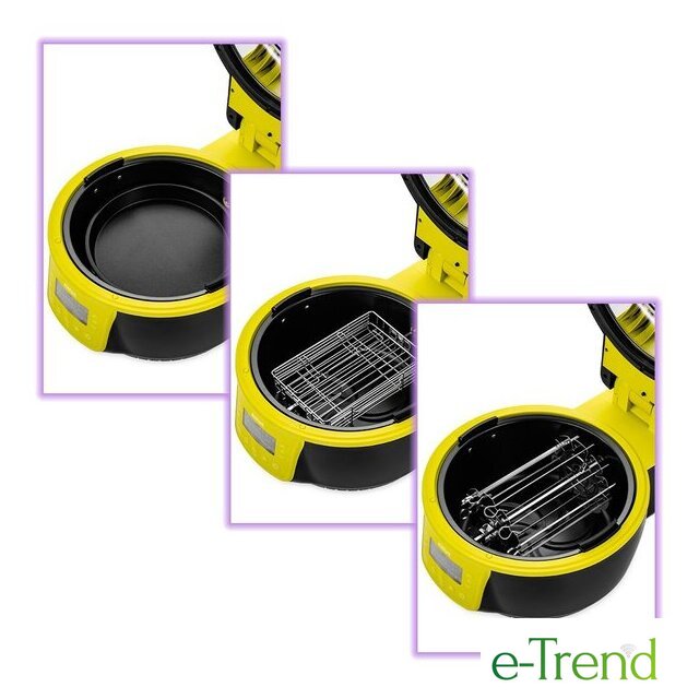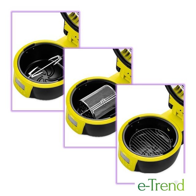 | Комплект поставки | - аэрогриль- вертел- держатель вертела- противень- решетка- решетка для стейков- вращающаяся корзина- шампуры- щипцы- фильтр |