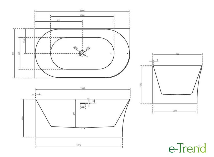 170x78 см, объём: 220 л
