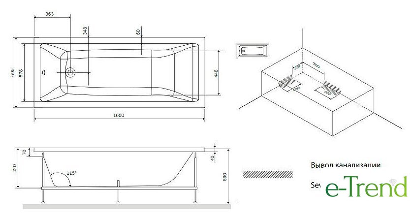 | Глубина ванны | 42 см |