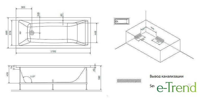 | Глубина ванны | 42 см |