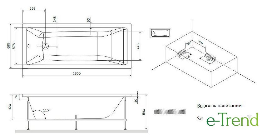 | Глубина ванны | 42 см |