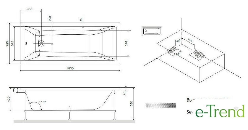 160x69.5 см, объём: 188 л