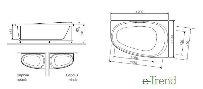 | Глубина ванны | 45.2 см |