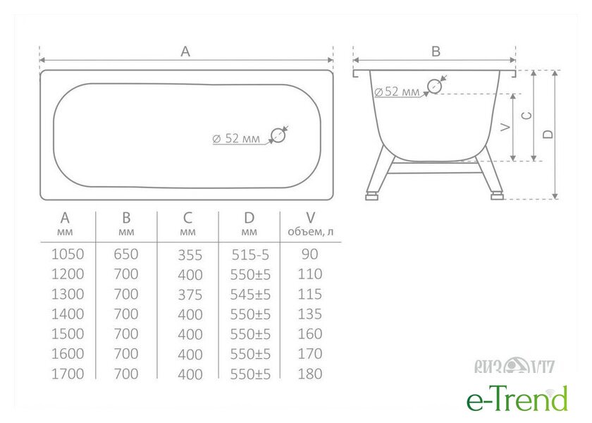 | Глубина ванны | 37.5 см |
