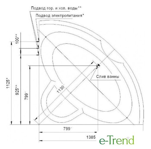 | Глубина ванны | 46 см |