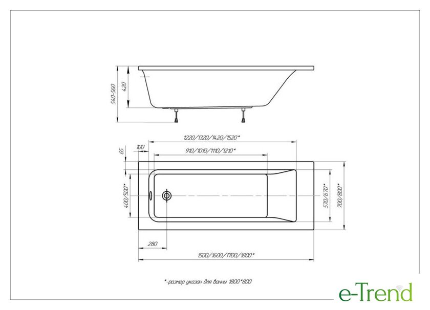 | Глубина ванны | 42 см |