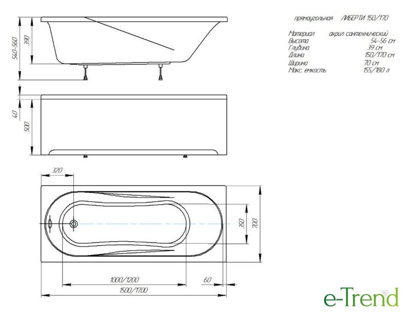 | Глубина ванны | 39 см |