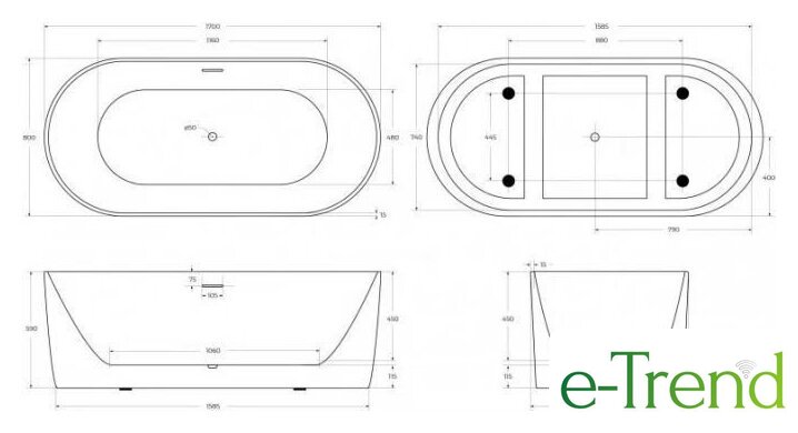 | Глубина ванны | 45 см |