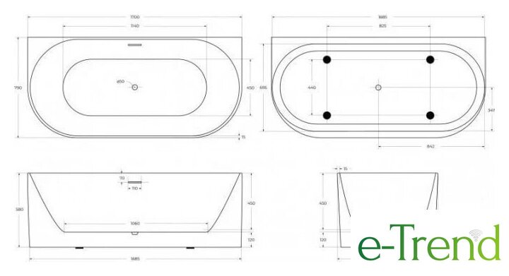 | Глубина ванны | 46 см |