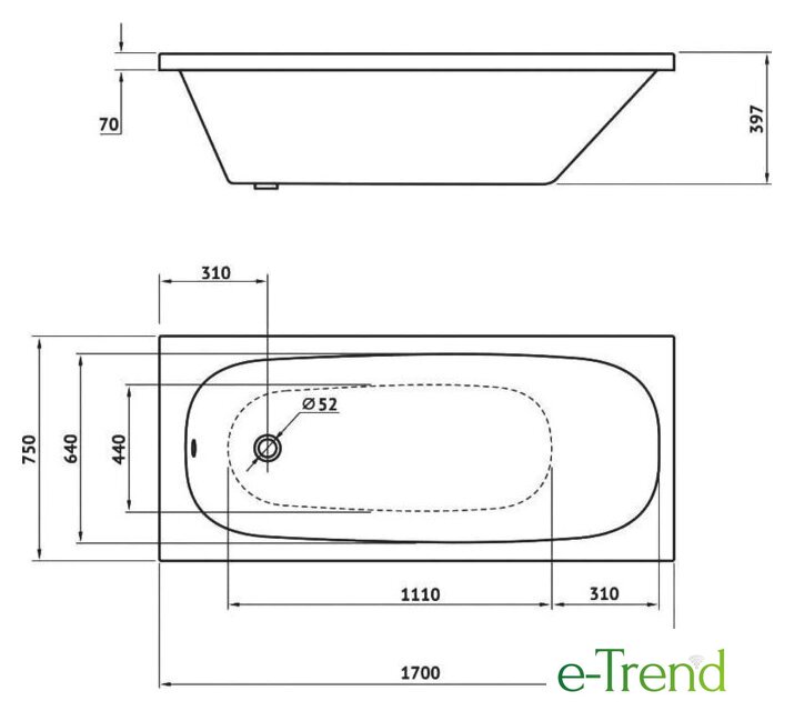 170x75 см, объём: 210 л
