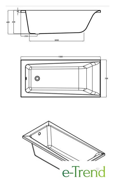 | Глубина ванны | 43.5 см |