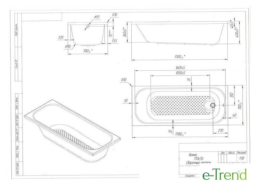 | Противоскользящее покрытие дна | с покрытием |