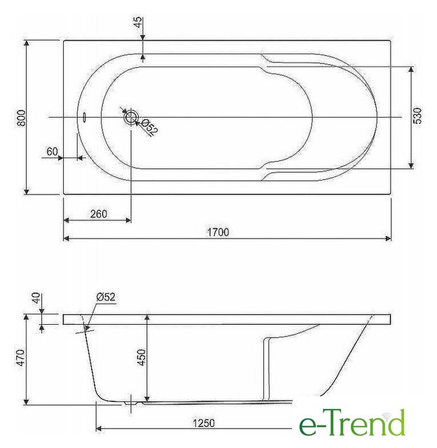 170x80 см, объём: 220 л