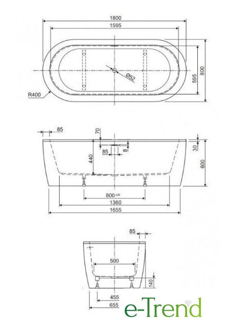 | Глубина ванны | 44 см |