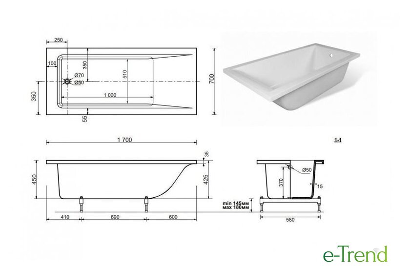 | Глубина ванны | 45 см |