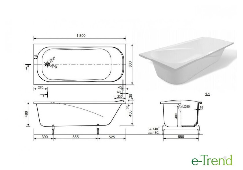 | Глубина ванны | 45 см |