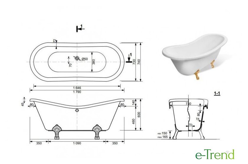 | Глубина ванны | 46 см |