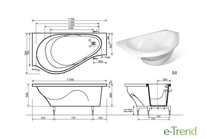 | Глубина ванны | 49 см |