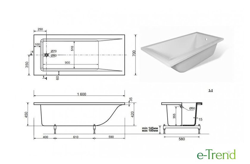 | Глубина ванны | 45 см |