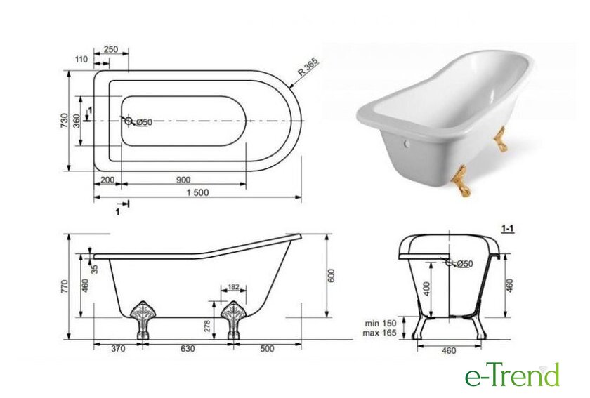 | Глубина ванны | 46 см |