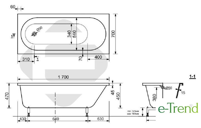 | Глубина ванны | 45 см |