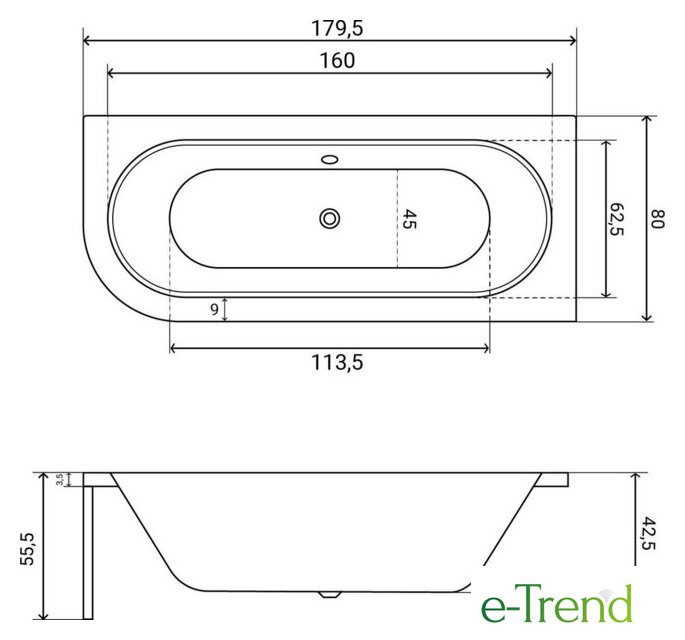 | Глубина ванны | 42.5 см |