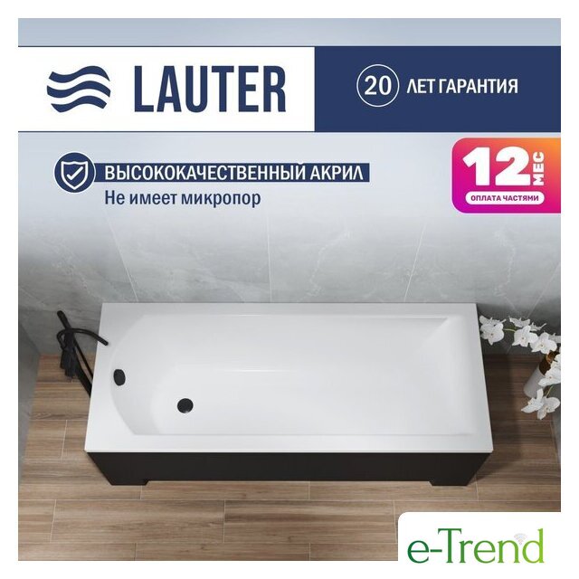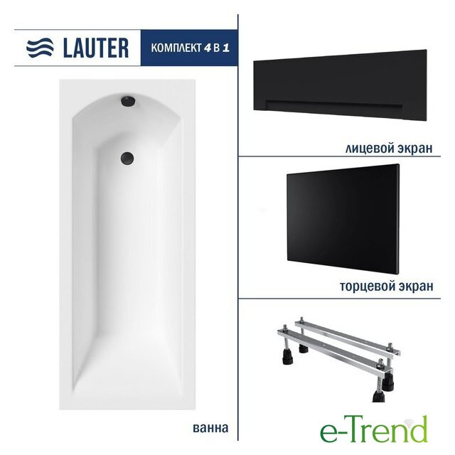 Ванны Lauter Lauter Amelia 160х70 21204060 (с ножками, лицевым черным и торцевым экраном) Код товара: 11003063