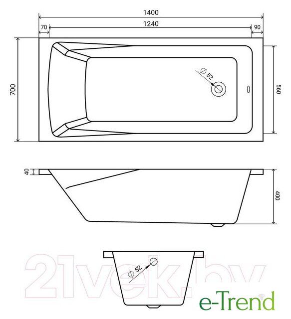170x75 см, объём: 190 л