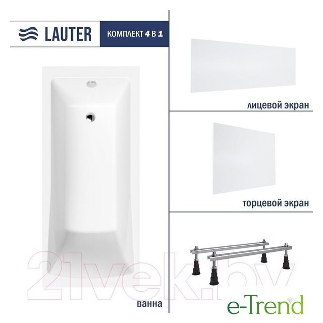 Ванны Lauter Lauter Aurora 170x75 21010075 (с ножками, лицевым и торцевым экранами) Код товара: 10000490