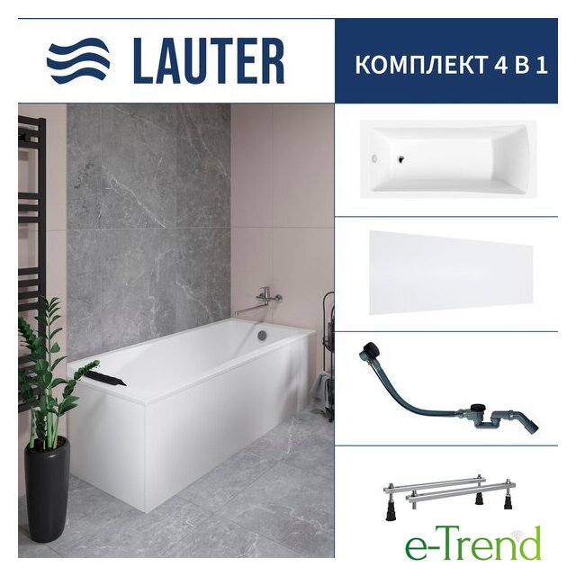 Ванны Lauter Lauter Aurora 170x75 21010075 (с ножками, лицевым экраном и сифоном 21Y32001 матовый черный) Код товара: 11253904