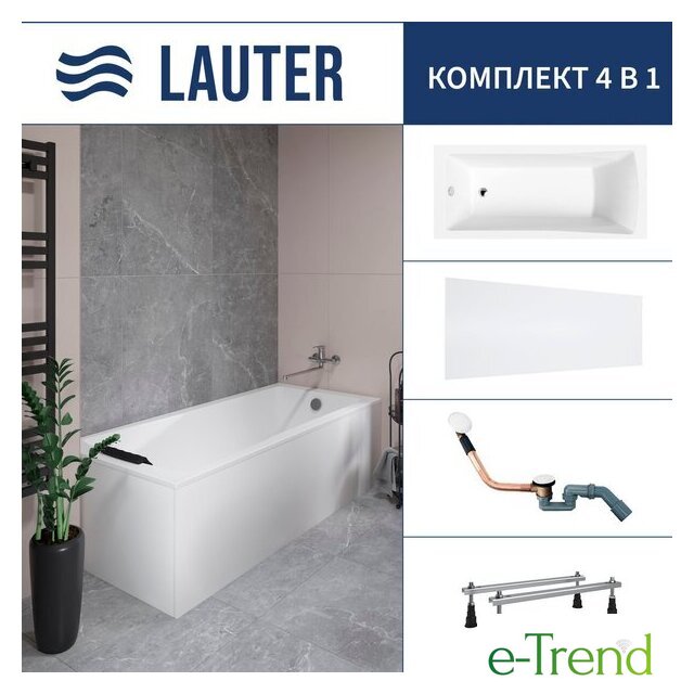 Ванны Lauter Lauter Aurora 170x75 21010075 (с ножками, лицевым экраном и сифоном 21Y11022 белый) Код товара: 11253907