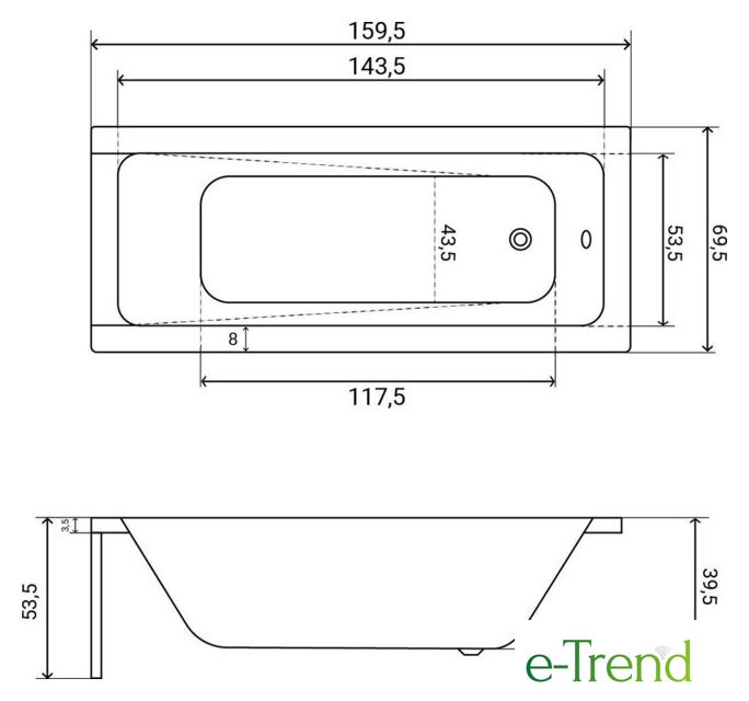 | Глубина ванны | 39.5 см |