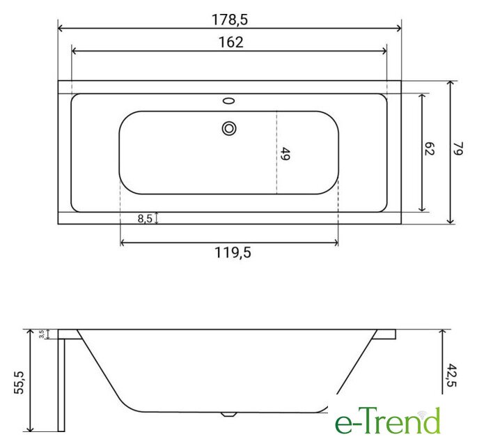 | Глубина ванны | 42.5 см |