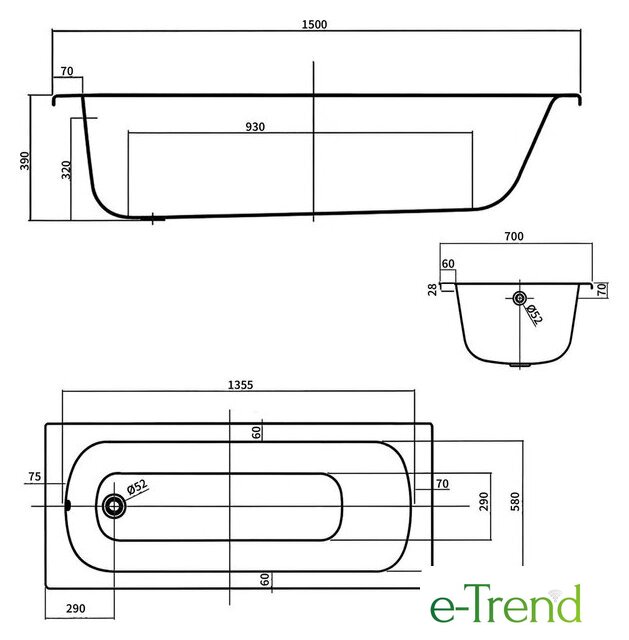 | Глубина ванны | 39 см |