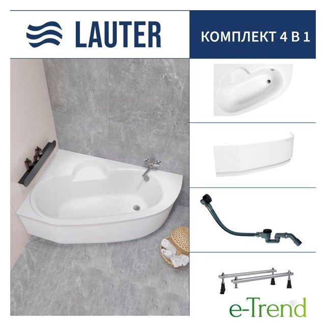 Lauter Valencia 150x100 2102150L (с ножками, лицевым экраном и сифоном 21Y11022 белый)
