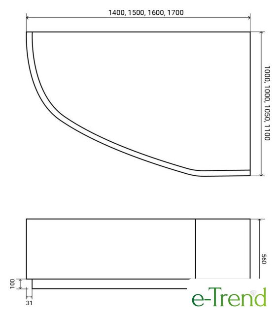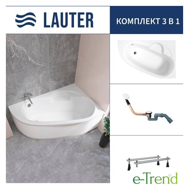 Lauter Valencia 150x100 2102150L (с ножками, лицевым экраном и сифоном 21Y11022 белый)