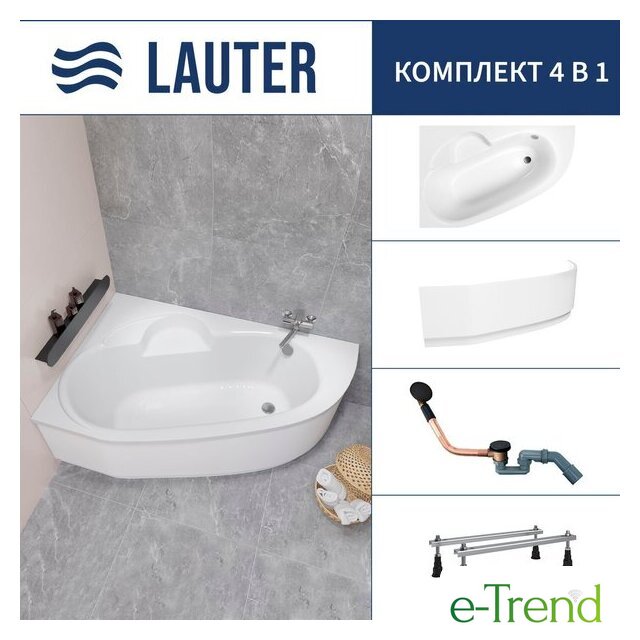 Lauter Valencia 150x100 2102150L (с ножками, лицевым экраном и сифоном 21Y11022 белый)