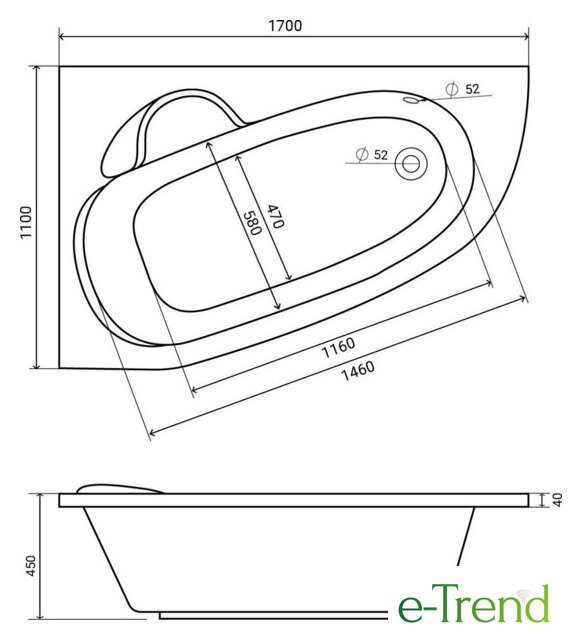 170x110 см, объём: 250 л