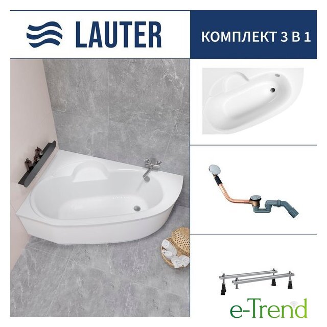 Lauter Valencia 150x100 2102150L (с ножками, лицевым экраном и сифоном 21Y11022 белый)