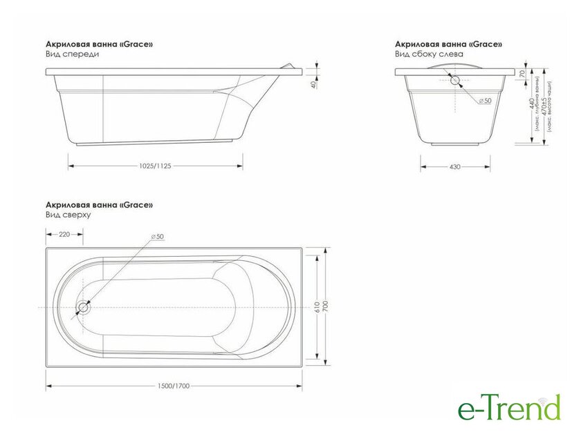 | Глубина ванны | 47 см |