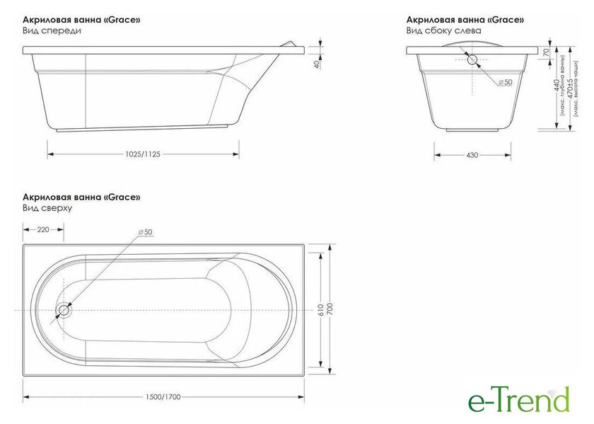 170x70 см, объём: 210 л