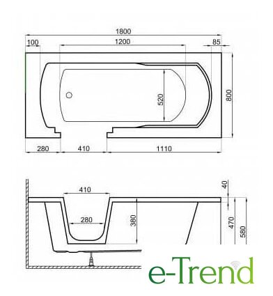 прямая, акрил, объем: 180 л
