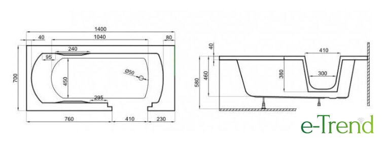 160x75 см, объём: 140 л
