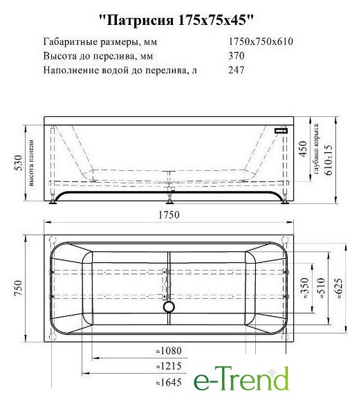 | Глубина ванны | 45 см |