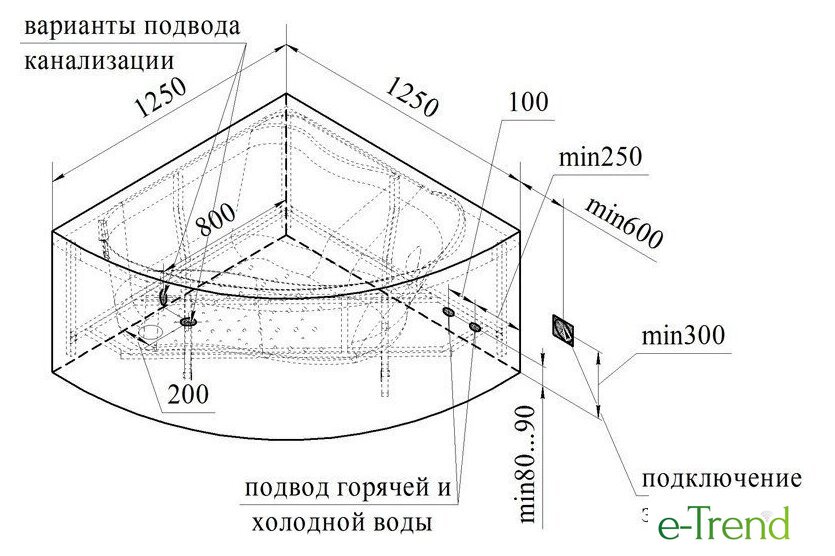 | Глубина ванны | 48 см |