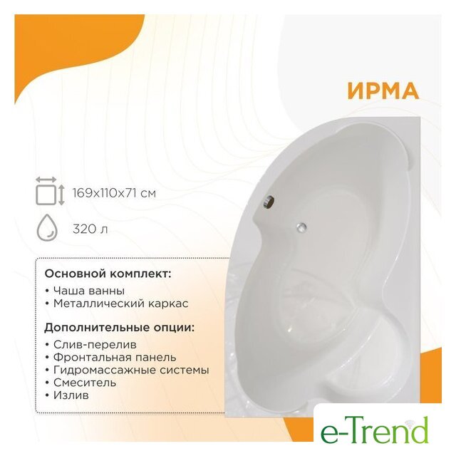 169x110 см, объём: 320 л