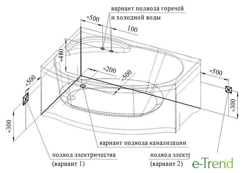 | Глубина ванны | 48 см |