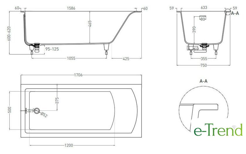 | Глубина ванны | 46 см |