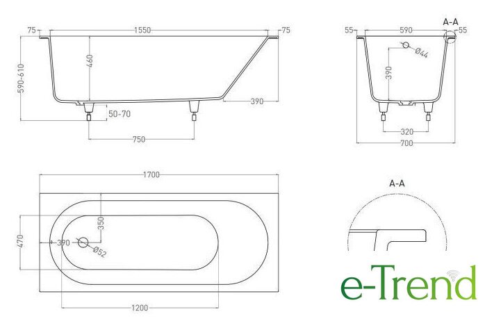 | Глубина ванны | 46 см |