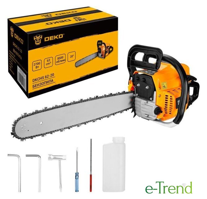 | Комплект поставки | - Бензопила в частично разобранном виде (корпус двигателя – 1шт, шина – 1шт, цепь – 1шт, защитный щиток – 1шт, упор зубчатый (гребенка) – 1шт, саморезы – 2шт) - 1 шт.- Ключ свечи зажигания - 1 шт.- Отвертка для регулировки карбюратора - 1 шт.- Шестигранные ключи - 2 шт.- Напильник - 1 шт.- Емкость для приготовления топливной смеси - 1 шт.- Руководство по эксплуатации - 1 шт. |